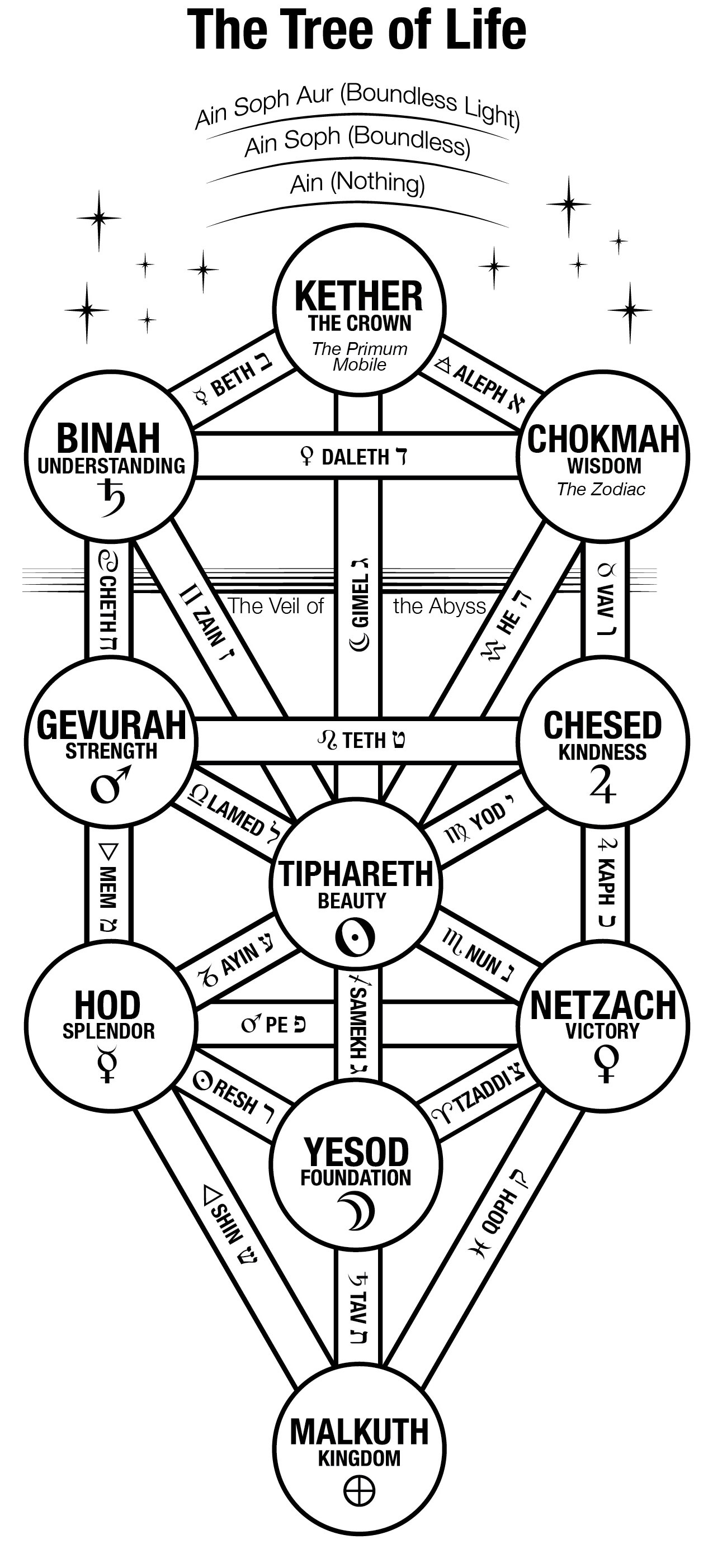Qabalah is one of those frameworks in the occult world that is more or less omnipresent in almost every modern incarnation of magical practice in the western tradition. Because of that, it is important to understand the mechanics of how it works and why, so this week let’s talk about how we can use Qabalah and astrology! Learning the basics of Qabalah will help us gain a greater understanding of our world around us, and to better utilize this symbology for our magical workings. Qabalah is a vast topic —far too complex to cover in a newsletter. Even books struggle to contain and organize the broad scope of Qabalah. For the purposes of this conversation, we will focus mainly on the Tree of Life, as it is the most accessible and readily available for immediate use for any astrologer or magician.