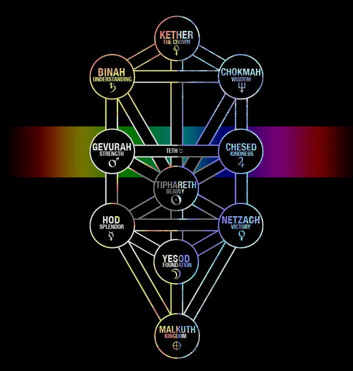 Recall that the spheres of Gevurah and Chesed are joined by the path of teth. By looking at the path that joins two spheres, we can gain information on what is needed to balance them. The letter teth represents the serpent, is also the sign of Leo where the Sun rules. We can think of cohesion as the domain of the sphere of the Sun, because the Sun creates order. In traditional astrology, the ancients said the Sun rules authority over the masses, rulership over one’s country. By bringing into alignment the pieces of oneself, one asserts authority over the masses —in this case the masses of one’s thoughts, feelings, lived experiences and past lives. If all these experiences are brought within the system and thoroughly understood and oriented towards the same goal, coherence is achieved.